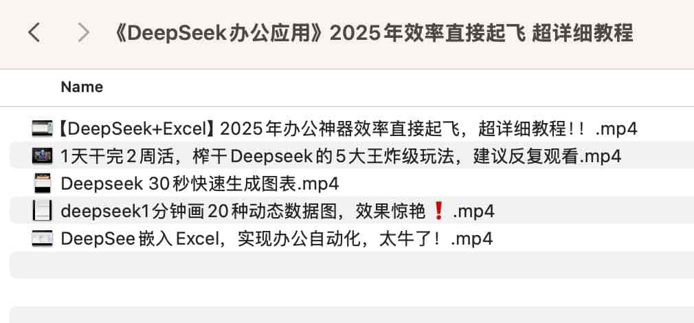《Deepseek办公应用》是一套详细的教程,通过深度解析Deepseek与Excel的无缝集成,展示如何在极短时间内生成专业图表和动态数据图,实现办公自动化和效率飞跃。课程通过视频讲解,示范如何在30秒内快速生成图表、1分钟内绘制20种动态数据图,充分释放Deepseek的五大核心玩法,帮助用户高效完成工作任务,显著提升办公效率,是2025年实现办公效率直线上升的必备神器。