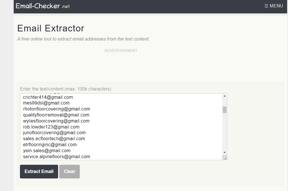 然后将刮到的文本,复制粘贴到email extrator里,就可以把邮箱信息提取出来