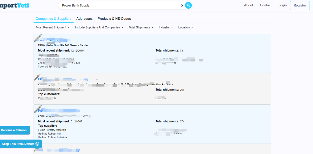 ImportYeti.com 的数据来自于美国海关,是一个免费的美国进口数据查询网站。它的功能非常强大,可以进行各种关联数据查询,包括美国买家公司名、地址、供应商名称、提单内容以及按照地址筛选美国买家和设置一定时间段观察美国买家的采购频率等功能,是每一位外贸人的必备工具。