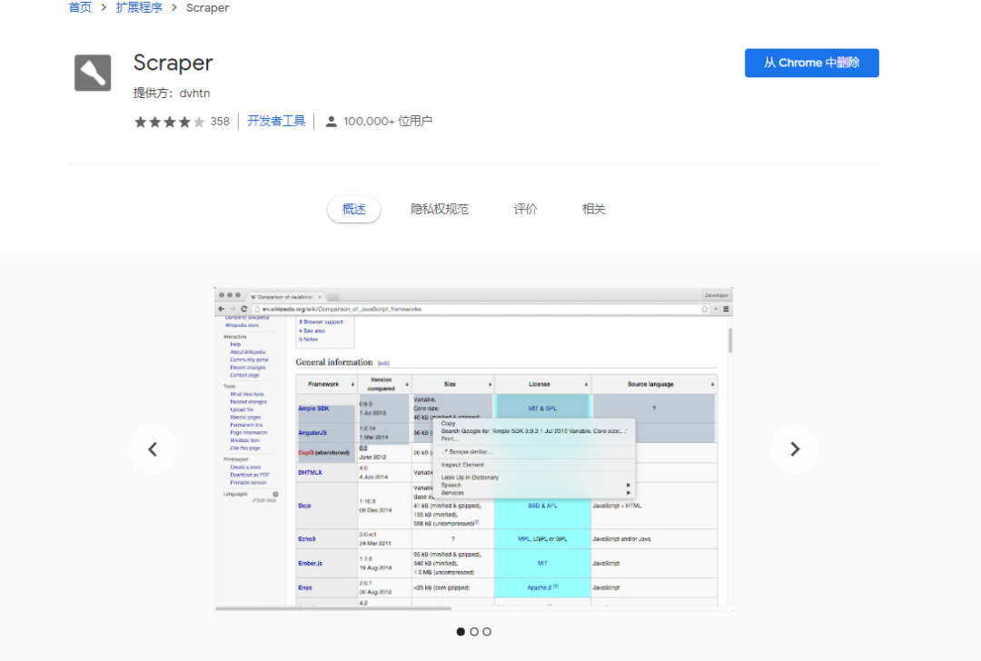 地址:https://chrome.google.com/webstore/detail/scraper/mbigbapnjcgaffohmbkdlecaccepngjd