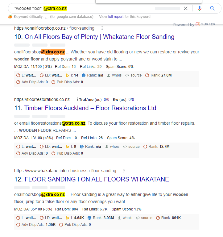 这样就搜索到了带有@xtra.co.nz邮箱的独立站了
