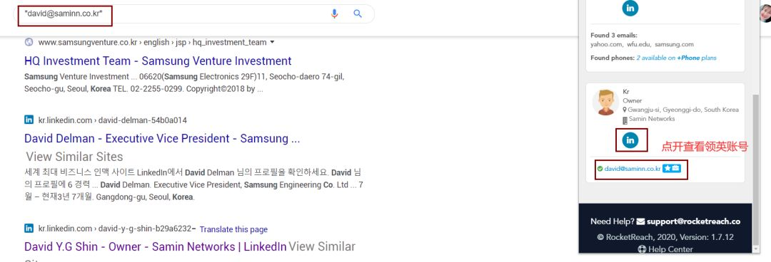 RocketReach是Google插件,大家直接去Google extension搜索rocket reach进行下载download和安装install,就可以在Google浏览器上运行使用了,非常方便快捷。安装之后呢,在Google搜索框搜索页面,然后点击RocketReach就可以get页面相关的Email邮箱了。