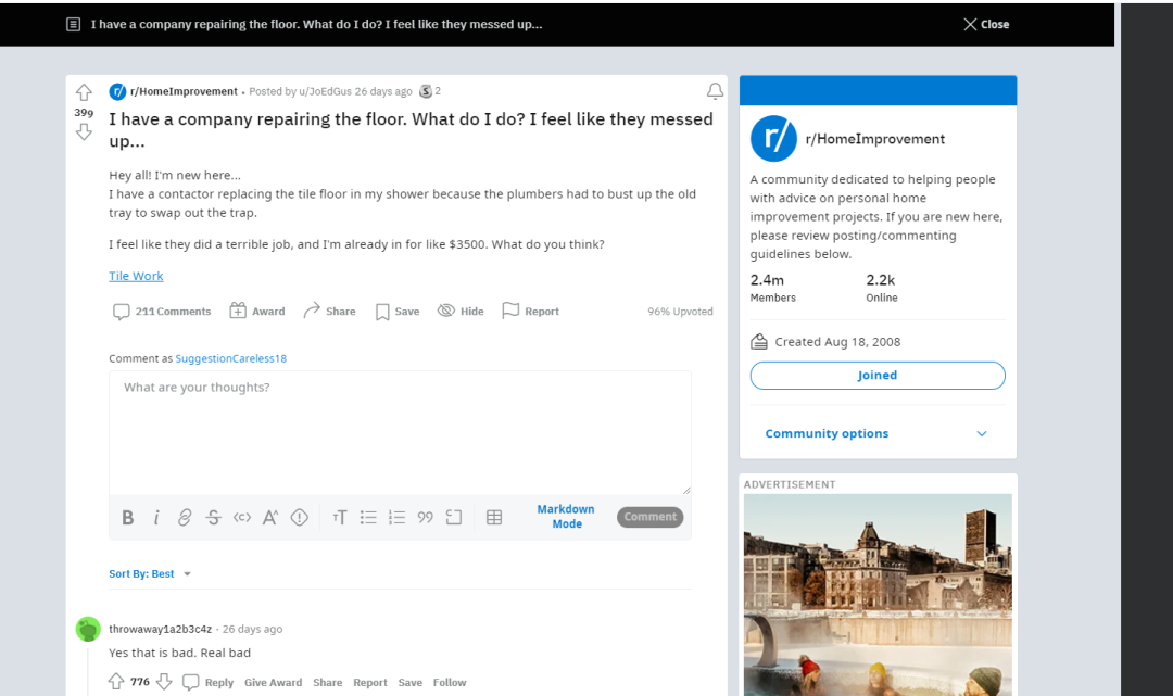 以地板相关内容为例,我们输入“wooden floor”进行搜索,并筛选所有问题类帖子,搜索结果如下图所示。