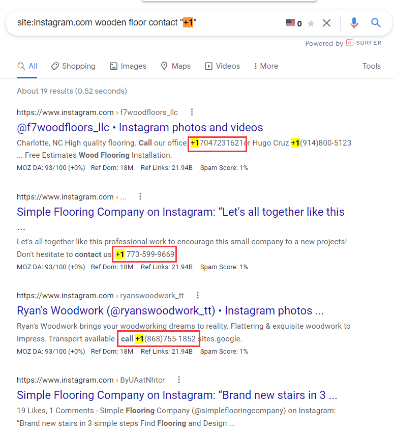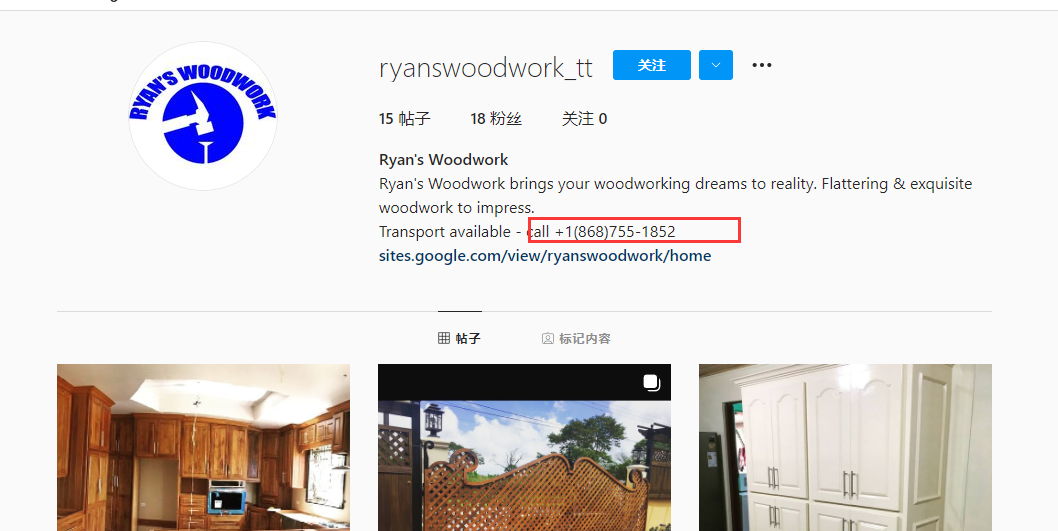 这样Instagram上的做wooden floor的电话就被搜索出来了,帖子post或者账号profile的电话都可以被搜索到。随机点开一个